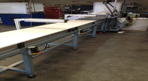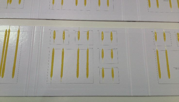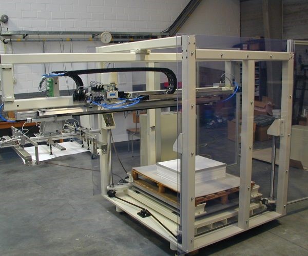 Boards are destacked automatically and a glue pattern is sprayed