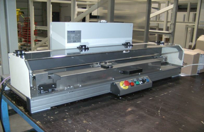 An operator puts the samples manually, automatic pressing and drying table