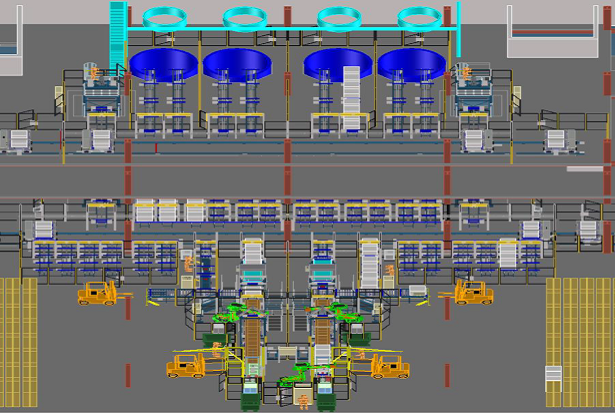 Handling system with chain conveyors, robots, shuttles and vertical transport systems for processing pulp bale units, bales and stacks to the pulpers