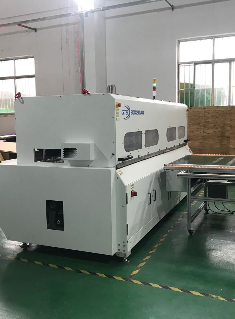 The GTS Boxstar is a very solid boxmaker with fully automatic setup being able to produce following FEFCO codes from sheets or fanfold, automatic feeder, also cutting the side-trim, handholes etcetera